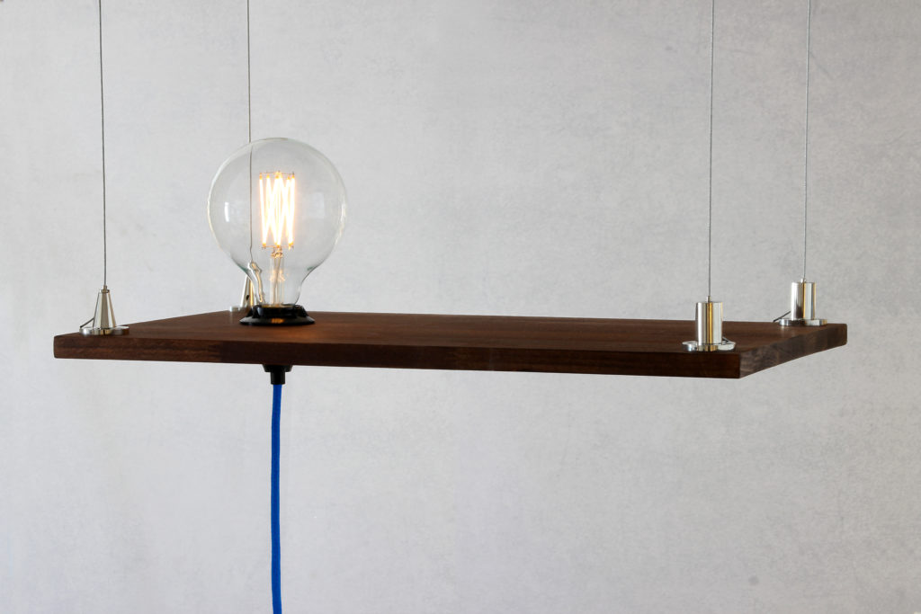 Als optisches Highlight sowie dekorative Zwecke haben wir eine 40 mm Bohrung mit einer Bohrkrone vorgenommen, um ein wunderschönes Textilkabel Lampenpendel mit LED Deko Leuchtmittel zu befestigen. Durch diese Kombination können Sie Produkte verkaufen, darstellen und gleichzeitig beleuchten. Aufgrund der Holzplattenstärke ist hier eine E27 Bakelit Dachfassung optimal weil eine ausreichende Gewindelänge vorhanden ist. Die Dachfassung wurde von unten durch das 40 mm Loch gesteckt und mit einem Schraubring oberhalb verschraubt.