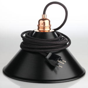 Textilkabel Pendel mit schwarzem Lampenschirm aus Metall